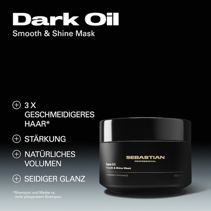 Die Sebastian Professional Dark Oil Smooth and Shine Mask bietet intensive Pflege für trockenes, strapaziertes und widerspenstiges Haar. Die luxuriöse Formel mit kostbaren Ölen wie Argan-, Sandelholz- und Zedernholzöl dringt tief in das Haar ein, glättet die Struktur und verleiht seidig glänzendes, gesund aussehendes Haar.