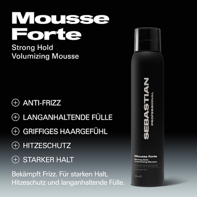 Das Sebastian Professional Mousse Forte ist ein leistungsstarkes Volumen-Mousse für starken Halt und langanhaltende Stylingkontrolle. Die luftige Schaumtextur verleiht feinem bis normalem Haar Volumen, Fülle und Struktur, ohne zu verkleben oder Rückstände zu hinterlassen.