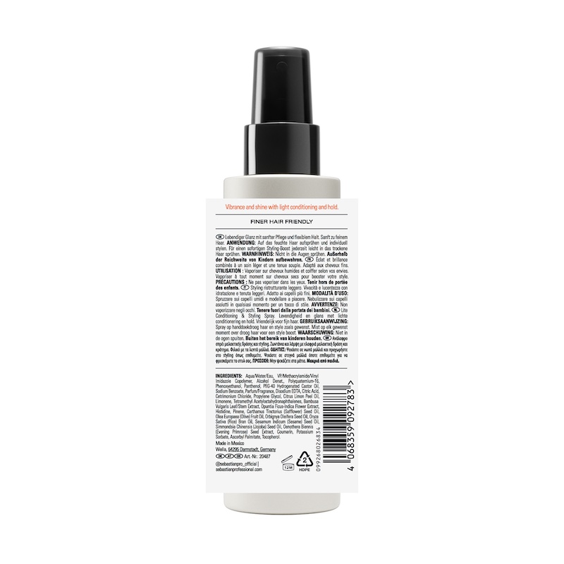 Das Sebastian Professional Potion 9 Lite Conditioning & Styling Spray ist ein leichtes Leave-in Pflege- und Stylingspray, das dem Haar neue Energie, Glanz und flexible Kontrolle verleiht. Die innovative Formel mit 9 botanischen Extrakten pflegt das Haar intensiv, ohne es zu beschweren, und unterstützt die natürliche Haarstruktur.