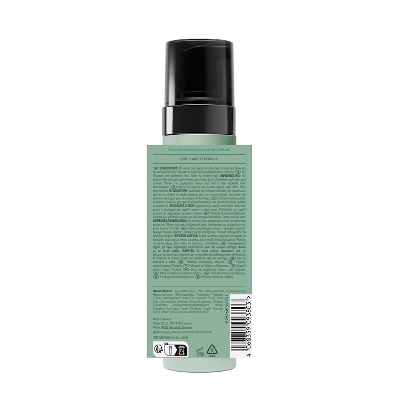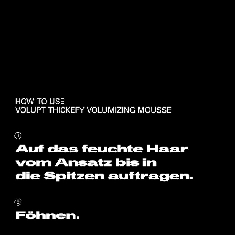 Eine kleine Menge des Volumen-Mousses in das handtuchtrockene Haar geben und gleichmäßig vom Ansatz bis in die Längen verteilen. Anschließend föhnen oder wie gewünscht stylen – für maximales Volumen ideal über eine Rundbürste.